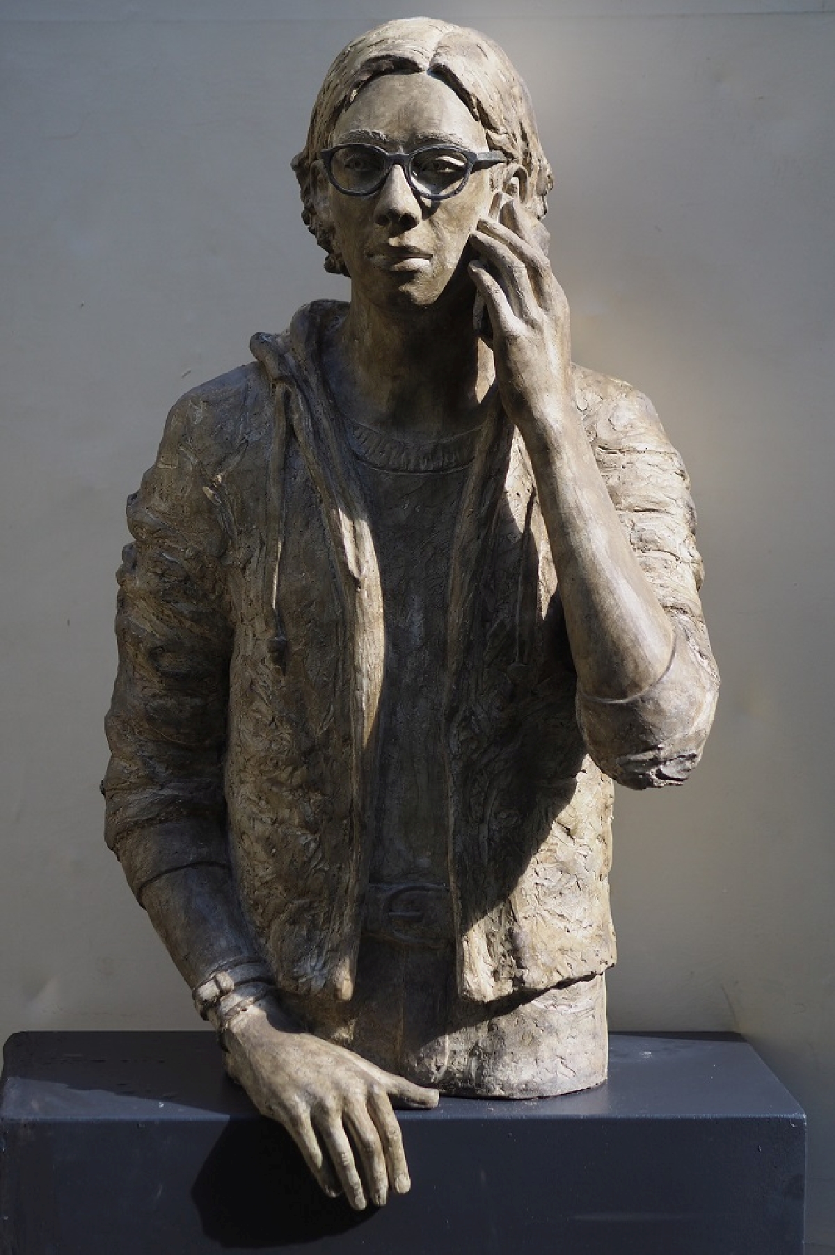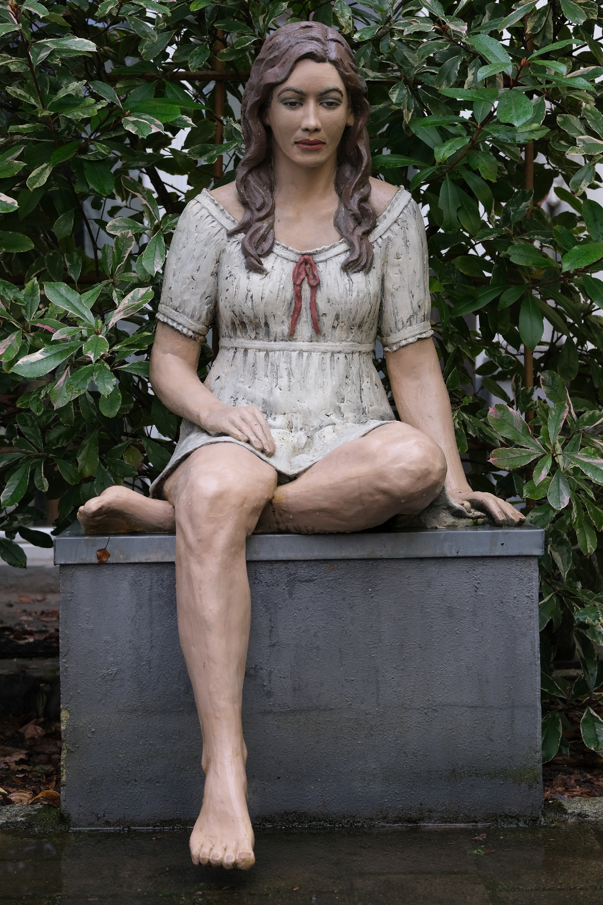 Das auf den ersten Blick unscheinbare, jedoch für die Kunstgeschichtsschreibung des 20. Jahrhunderts elementare Material Beton wird auch für die großen Plastiken verwendet. Durch Haltung, Gewandung und nicht zuletzt die farbliche Fassung, die mal lasierend dem Werkstoff vollen Raum zur Entfaltung gibt, mal deckend elementare Charakteristika hervorhebt, erhält jede Figur ihre ganz eigene Biografie und ihre persönliche Ausstrahlung. Den lebensgroßen Figuren ist jedoch eines gemeinsam: Es „passiert“ etwas mit dem Raum oder dem Platz, den sie einnehmen…